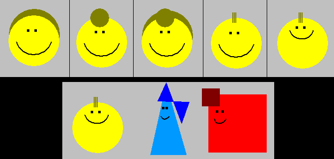 | In tomorrow's cartoon next door at Arthur, King of Time and Space, present-day Arthur starts drawing a daily webcomic. His characters are computer-generated geometric shapes (Fancy that!). In the first of his gags I portray, Guenevere and Lancelot appear but Arthur himself doesn't. This is me figuring out what Arthur looks like in Arthur's cartoons. |