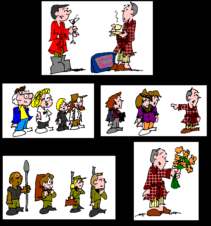 | Did a lot of philosophy note sketching, and some pure doodling, at the last class meeting yesterday. None of it's stand-alone funny but I like the spontaneity of a lot of the isolated figures. |